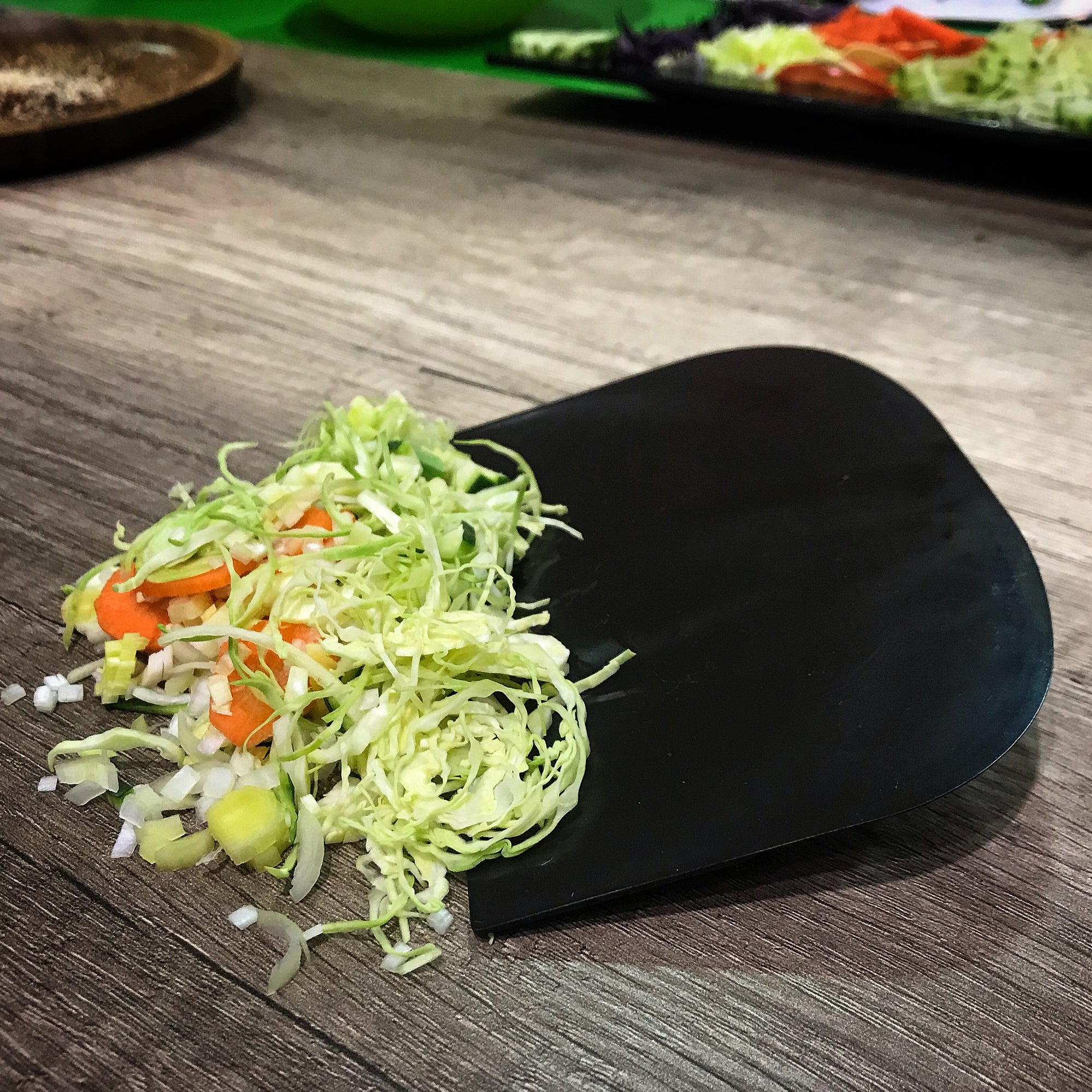 Een deegschraper is van origine een handig hulpmiddel voor bakkers, maar het is in feite multifunctioneel in de keuken. Het ding is makkelijk om snippers versneden ingrediënten bij elkaar te vegen! Deegschrapers worden gemaakt van kunststof of metaal. Je vindt ze in kookwinkels of online.